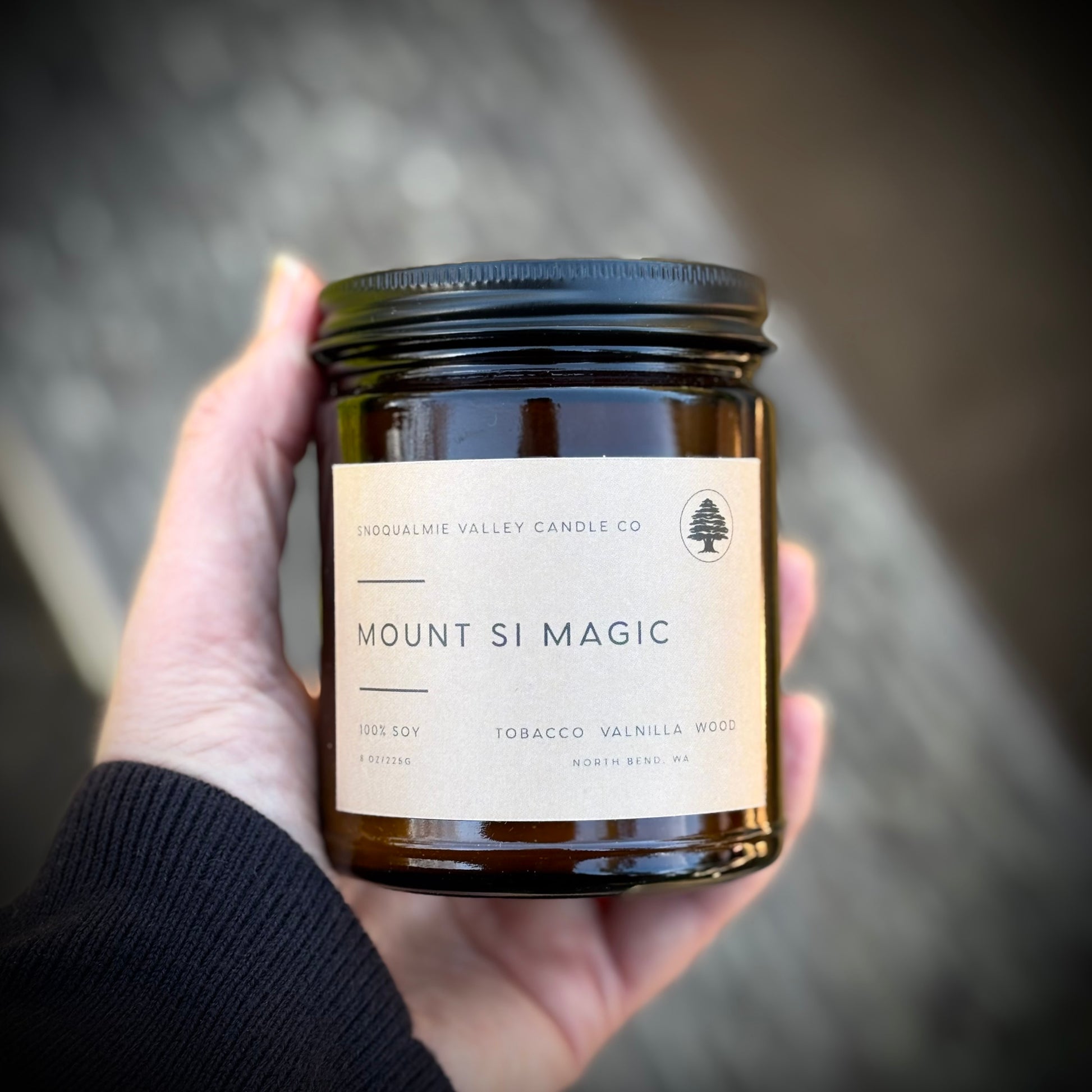 A little sweet, a little smoky, and totally cozy. Mount Si Magic opens with tobacco leaf, softens into vanilla and dried fruit, and settles into warm woods. Just like the trail at golden hour when the valley feels extra alive.